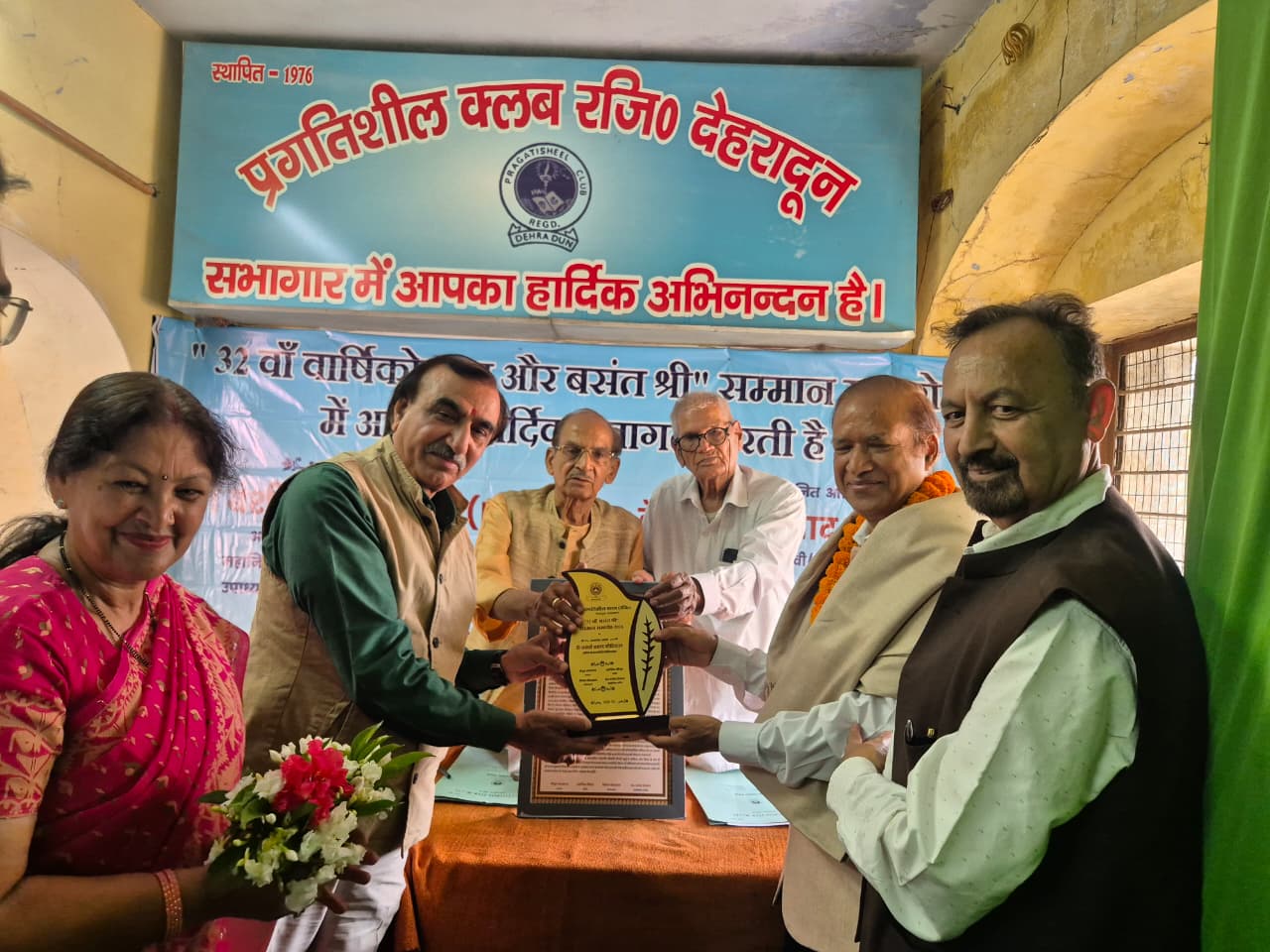 रविवार को देहरादून की जानी मानी सामाजिक संस्था प्रगतिशील क्लब के 50 वर्ष पूरे होने पर स्वर्ण जयंती समारोह मनाया गया साथ ही प्रतिवर्ष की भांति इस वर्ष भी बसंत श्री सम्मान समारोह भी किया गया जिसमें इस बार के बसंत श्री रहे जयंती प्रसाद नौटियाल।
